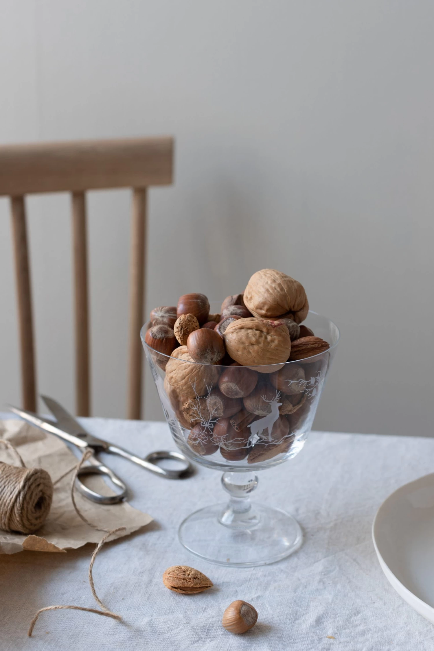 Die Alveskog Dessertschale aus Glas der norwegischen Marke Wik & Walsøe ist eine Schale auf einem Fuß mit einem wunderschönen Motiv das majestätische Hirsche umgeben von Zweigen und Vögeln zeigt. Die Glasschale mit ihrem von der Natur inspirierten Motiv eignet sich hervorragend als Portionsschale für ein Dessert oder zum Servieren von Süßigkeiten oder Snacks. Kombinieren Sie die schöne Dessertschale gerne auch mit anderen Teilen der gleichen Serie.