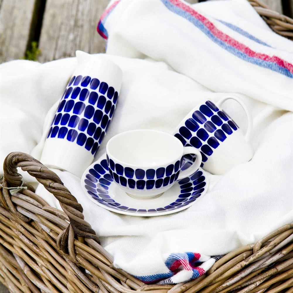 Die 24h Tuokio Tasse lehnt sich an der klassischen 24h Porzellanserie an, die Heikki Orvola im Jahr 1996 für Arabia entworfen hat. Im Herbst 2011 wurde die 24h Kollektion neu eingeführt, und um eine typische, blaue Dekoration ergänzt. Diese Kollektion besteht neben dieser Tasse aus Tellern, Schalen und Kannen. Den passenden Untersetzer finden Sie unter unseren Produktempfehlungen.