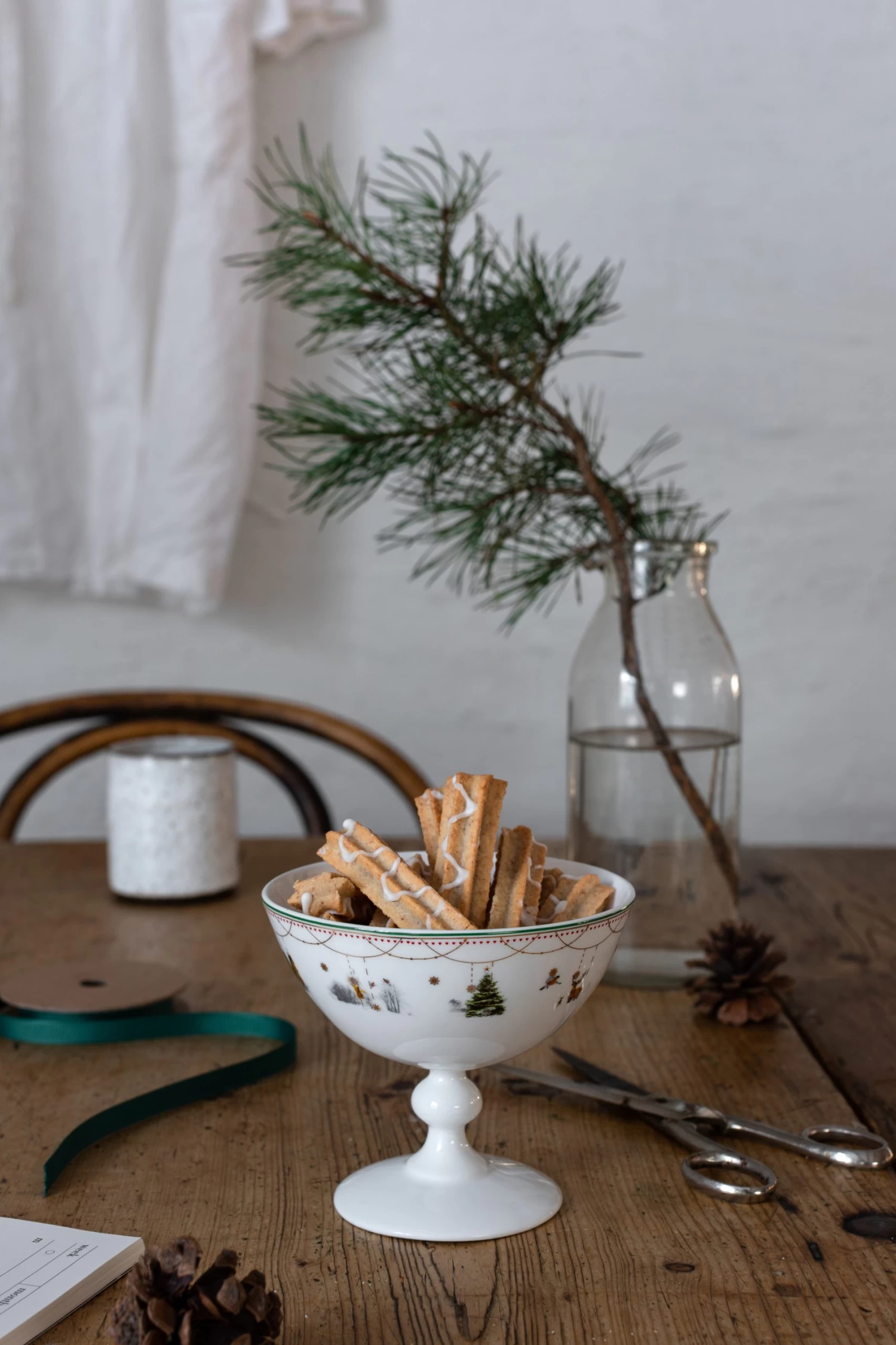 Die Julemorgen Story Schale auf Fuß der norwegischen Marke Wik & Walsøe hat ein dekoratives Weihnachtsmotiv mit kleinen Illustrationen von Linda Svedal Walsøe und besteht aus dünnem und feinem Bone China Porzellan. Die charmante Weihnachtsschale wird zu einem schönen Hingucker auf dem Esstisch, kann aber auch wunderbar für weihnachtliche Süßigkeiten und Nüsse verwendet werden. Kombinieren Sie die schöne Schale gerne mit anderen Produkten aus der Julemorgen Serie.